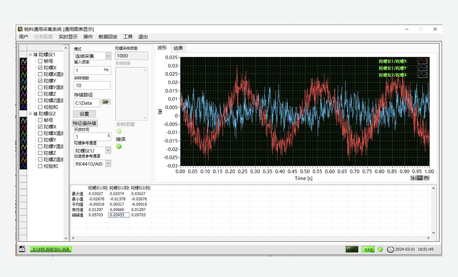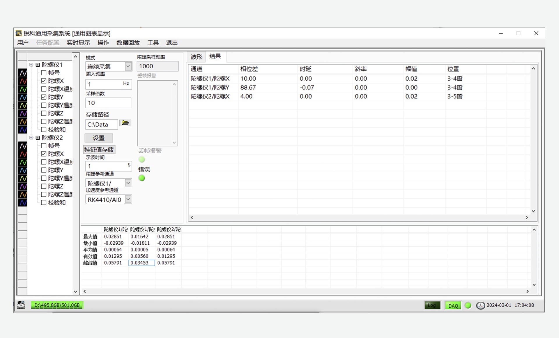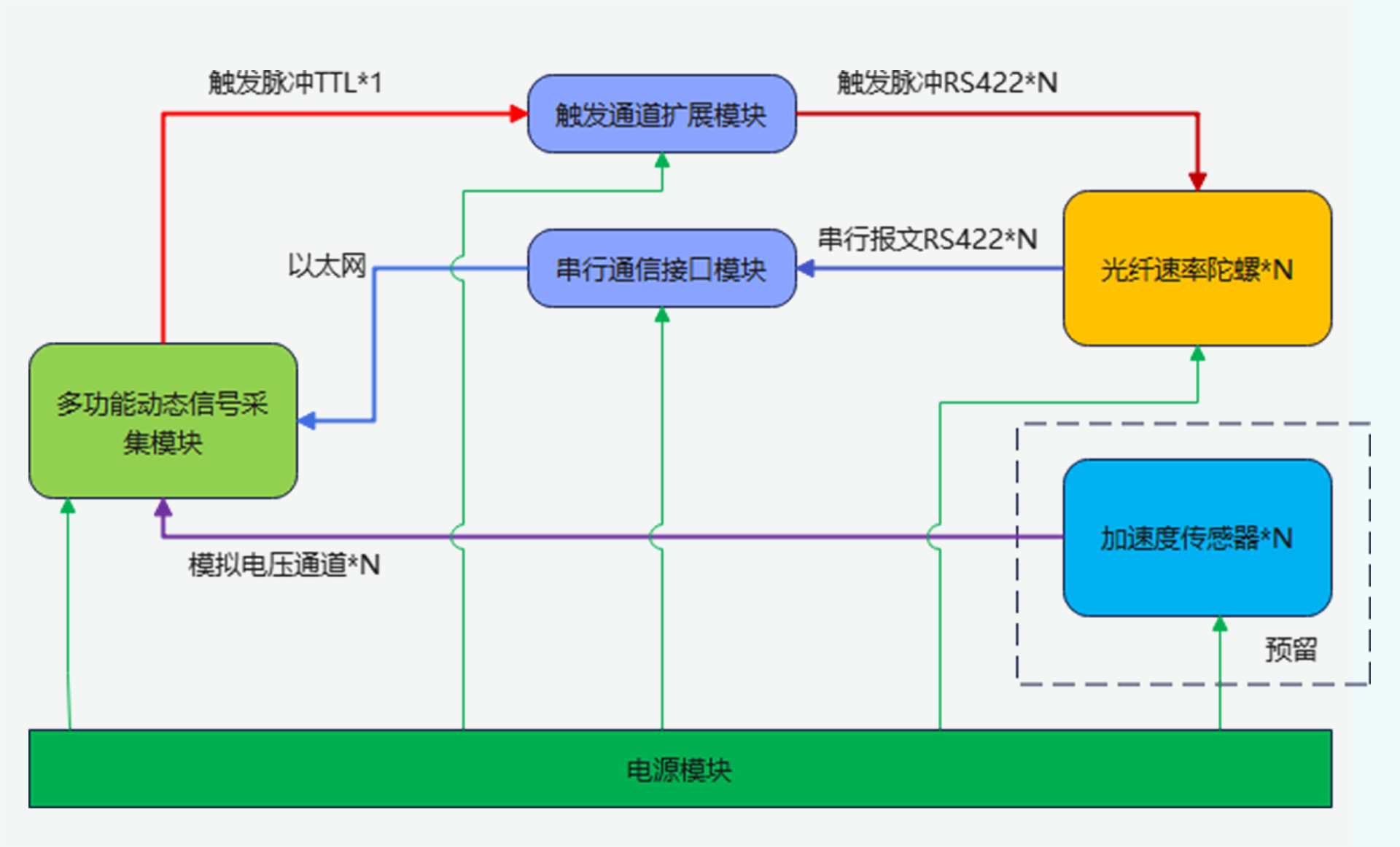本系統(tǒng)的硬件采用模塊化設(shè)計、將主控模塊、同步脈沖輸出模塊、陀螺儀數(shù)據(jù)接收模塊、電源模塊等集成到便攜式機架機箱中,支持多路光纖速率陀螺傳感器的同步數(shù)據(jù)采集,提供友好的人機操作界面,適用于振型斜率試驗中傳感器配置、數(shù)據(jù)實時顯示記錄、數(shù)據(jù)回放分析。