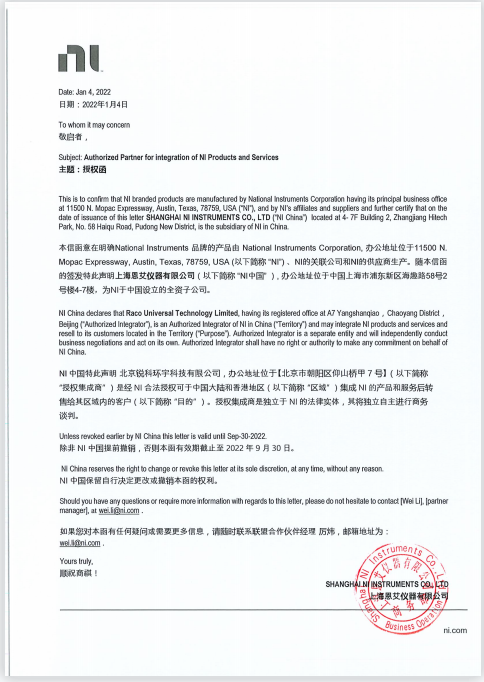 北京銳科環(huán)宇科技有限公司是美國國家儀器(NI)官方授權(quán)的中國地區(qū)頂級系統(tǒng)合作公司,負(fù)責(zé)NI產(chǎn)品的代理銷售和系統(tǒng)集成等全面業(yè)務(wù)。